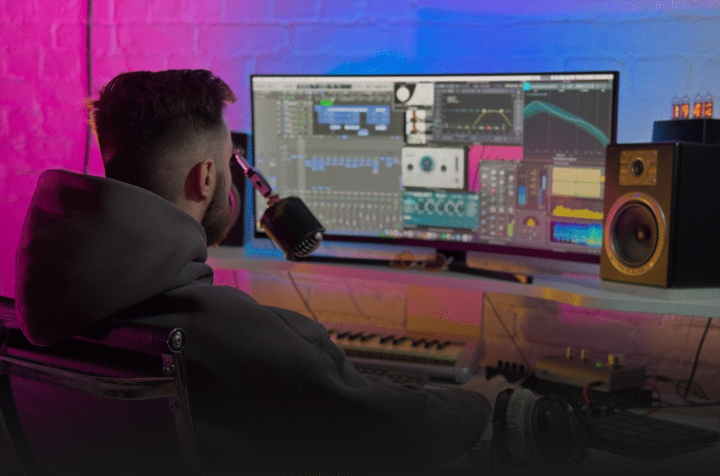 Наша студия предлагает полный цикл музыкального продакшена: аранжировка, сведение и мастеринг, создание минусовки, оркестровка, дистрибуция трека на Spotify, Apple Music, Яндекс Музыка, продвижение трека, дикторская озвучка, создание обложек и анимаций для соцсетей, а также продажа готовых песен и подарочные сертификаты на запись.